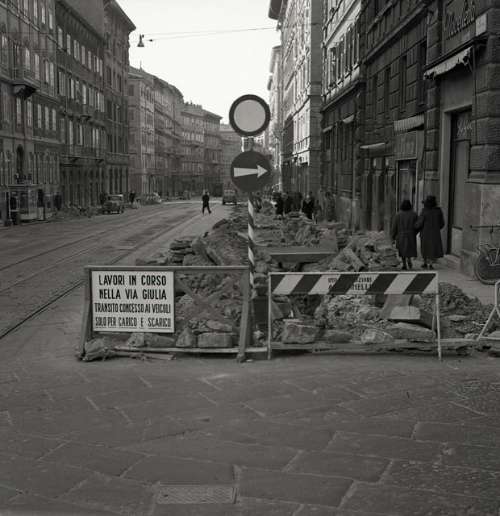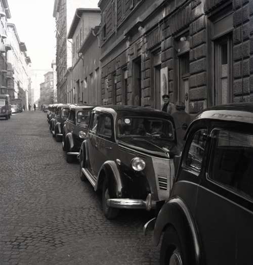Incidente tra carro con cavallo e Fiat 1100 in piazza San Giovanni