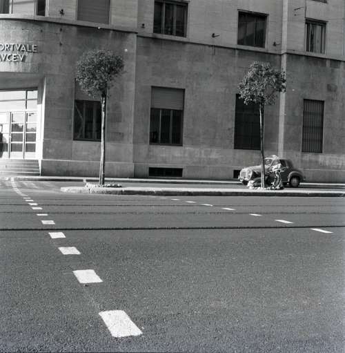 Vespa tra i binari del treno in via Cesare, Campo Marzio