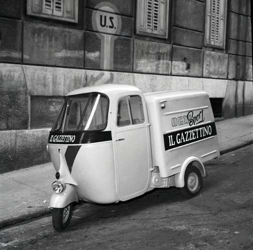 Motocarro APE con scritte "Ognisport" e "Gazzettino"
