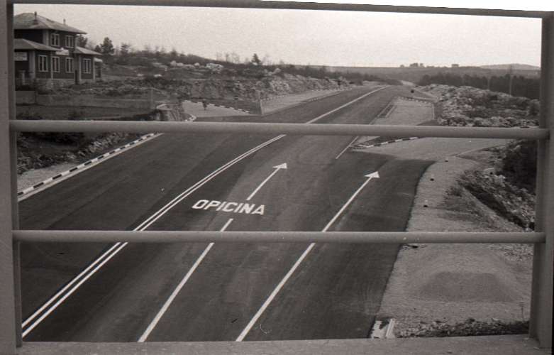Strada Tarvisiana con scritta Opicina (segnaletica orizzontale)