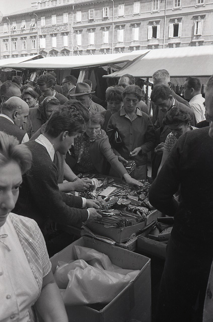 Acquirenti jugoslavi in piazza Sant'Antonio e in Ponterosso. Veduta della chiesa di Sant'Antonio Nuovo