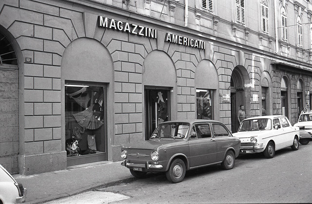 Acquirenti jugoslavi e vigili che multano auto jugoslave nella zona del Canal Grande (Ponterosso)
