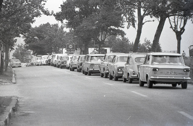 Lunga fila di turisti a Pese (confine con la Jugoslavia)