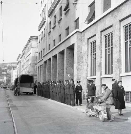 Min. Fracassi a Trieste : stazione, Hotel Savoia, Comune (anche gen. Winterton)