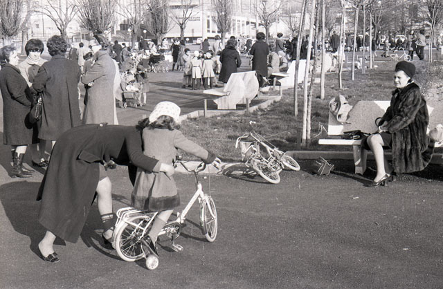 Bimbi in bici ; esterno casa via Gatteri e Ginnastica (Farmacia)