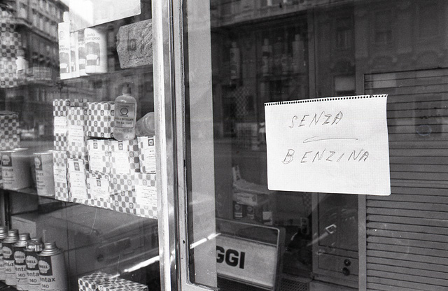 Distributore carburante con scritta “senza benzina”
