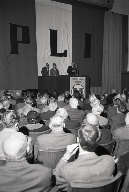 Comizio PLI (on. Malagodi) al cine Nazionale