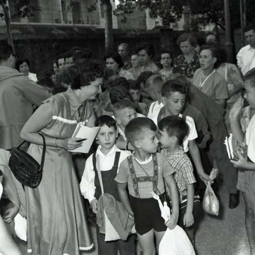 Serie Italia. preparazione de Il Piccolo del 26 ottobre 1954 ; Manifestazioni di entusiasmo della folla ; Benedizione a San Giusto