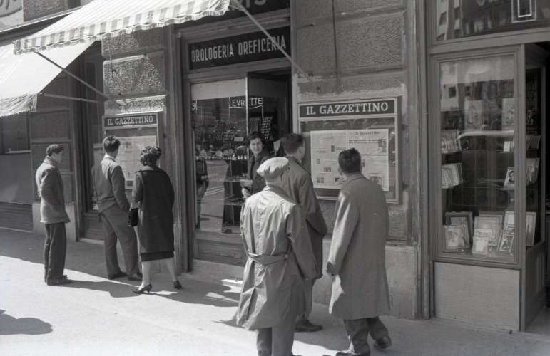 Incidente stradale: carro ferrovia con botti Dreher finito sul muro casa di v. Zanetti n.7