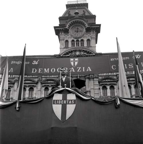 Comizio di Gui (DC) in piazza Unità