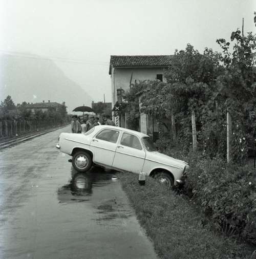 Incidente stradale tra Venzone e Tricesimo : Giulietta Alfa Romeo nel fosso