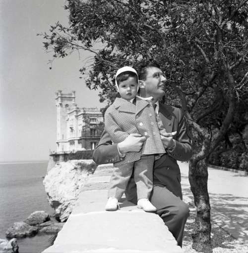 Mike Bongiorno e Luciano Tarlao, partecipante di Lascia o Raddoppia, all'Ippodromo di Trieste