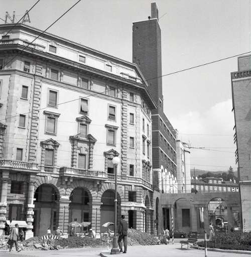 Ambasciatore USA James D. Zellerbach in visita a Trieste con agenti di polizia e vigili urbani