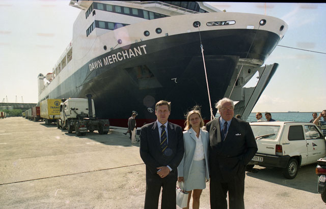 Navi turche. Riva Traiana. Camion turchi, camionisti turchi, traghetto turco Dawn Merchant, ormeggio.