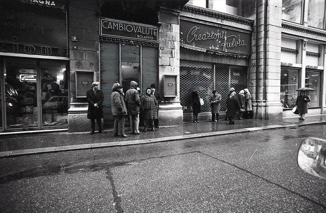 Fila davanti al cambia-valute Bolaffio