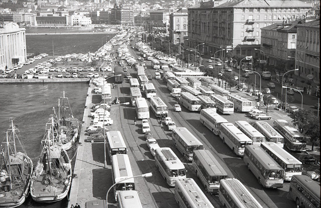 Auto e pullman jugoslavi in riva e al molo