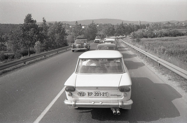 File di auto verso il confine con la Jugoslavia