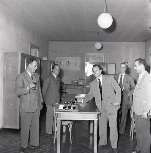 Kaiser Frazer (auto USA) : insegne luminose, dalla terrazza Hotel Milano