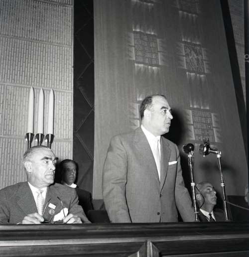 Giornalista Guido Botteri con magnetofono ; Proclamazione neo-deputati