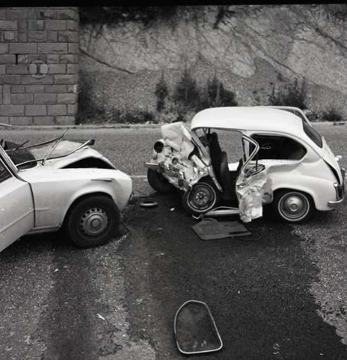 Anni '60 IIa metà Scontro frontale in Costiera (Alfa Romeo e Fiat 600)