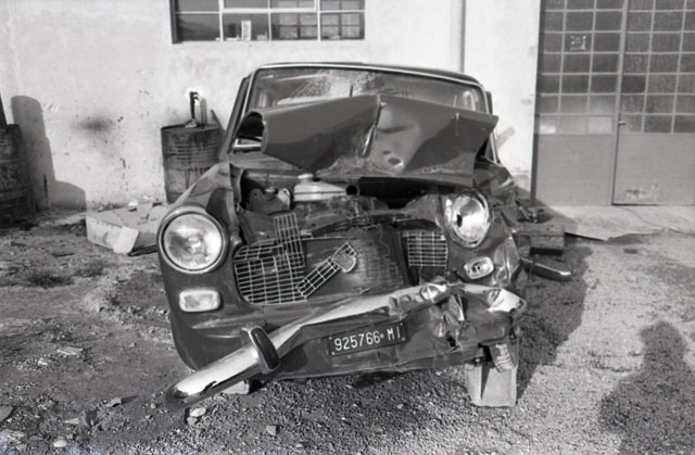 Automobile Fiat 1100 danneggiata