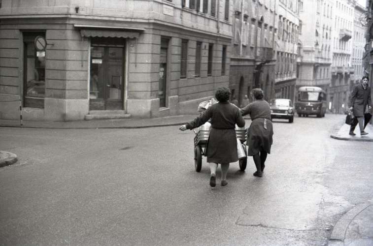 Donne del latte di Basovizza con carretto a mano in via Gatteri