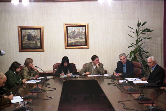 Premiazioni Lloyd Adriatico, premio biennale, 1999, Cucchiani, Claudio Magris. Saccari, Illy, Ravignani, Borruso. Museo Revoltella. Marchesich, piazza Unità.