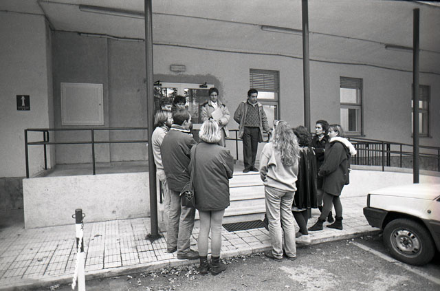 Primo giorno di scuola, elementari, alunni. Giovani ragazze a merenda. Sciopero generale contro finanziaria, 1992, questore 1992.