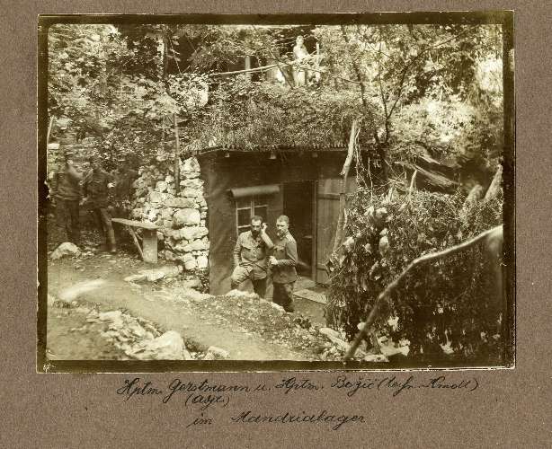 Dank des Korposkomdt (8. Korp.) : F. U. Lt. Scharitzer, Div. G. Mjr. Schonauer, Brigd. Obst. Moritz Kranz, Offiziere ... 44. Sch. Brigd. ... Zenson, Hptm. Paulus (Kr. Ord.); Oblt. Mukl (2. pilt. Sign.); Oblt. Sorko (Kr?), Oblt. Haslinger (v. Kr.), Oblt. Ziegler; Oblt. Niedermuller (v. Kr.), Oblt. Opl; Oblt. Petruha; Lt. Wuhr, Lt. Dangl