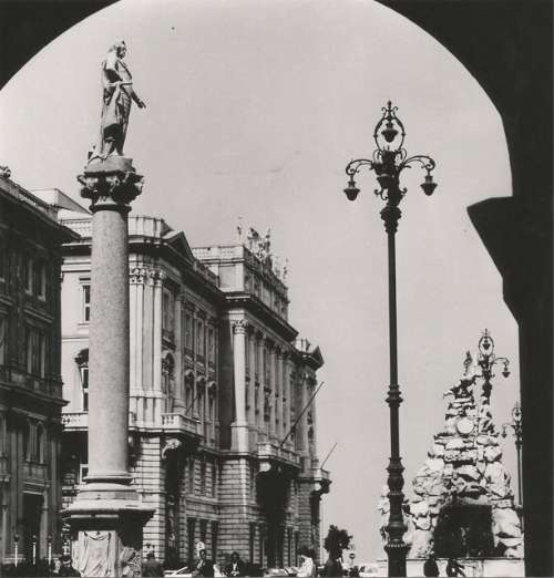 Piazza dell'Unità e colle di San Giusto al tramonto visti dal mare