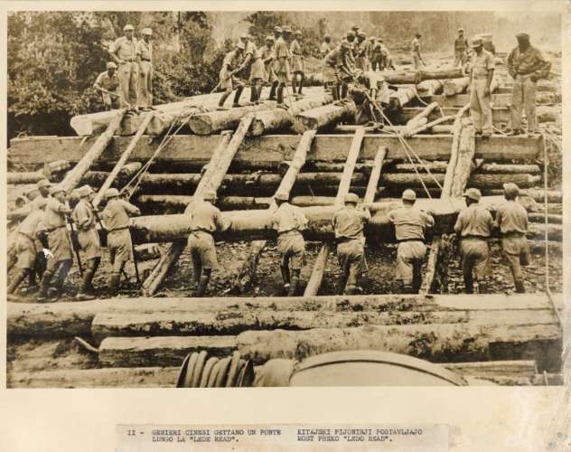 Lavoratori indiani rastrellano il greto di un torrente situato nel nord della Birmania per costruire la strada di Ledo
