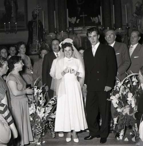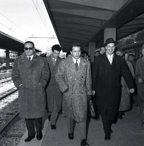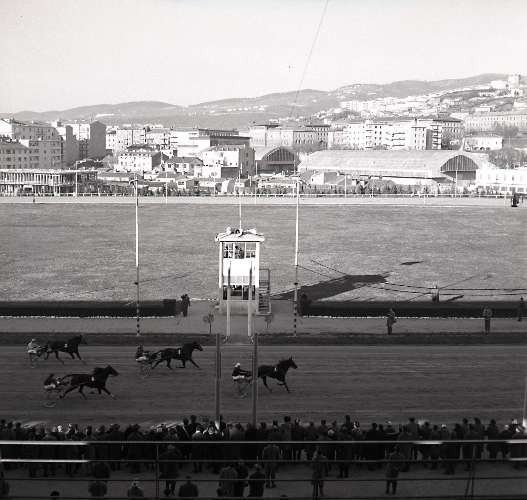 Mike Bongiorno e Luciano Tarlao, partecipante di Lascia o Raddoppia, all'Ippodromo di Trieste