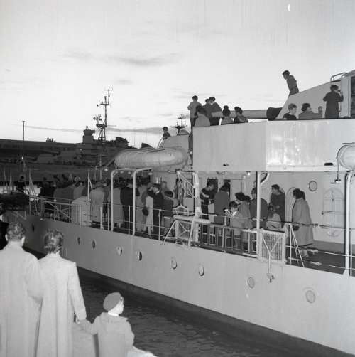 La folla in piazza Unità attende l'arrivo delle navi italiane