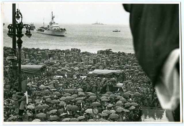 La folla in piazza Unità attende l'arrivo delle navi italiane