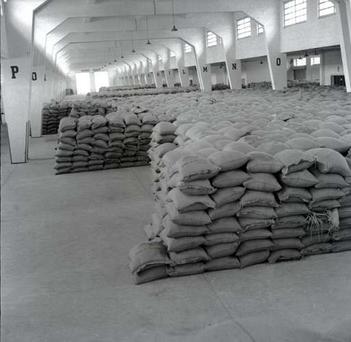 Arrivo e scarico caffè nave Vegaland ; Nave da guerra F564