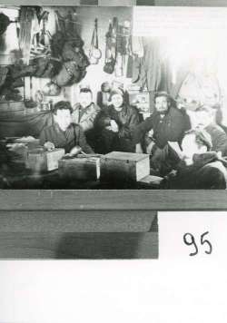 Interno della baracca: l’angolo della “Caterina”, la radio ricevente costruita con mezzi di fortuna. La squadra addetta alla diffusione delle notizie.