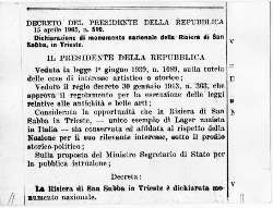 Il decreto che riconosce la Risiera di San Sabba Monumento Nazionale