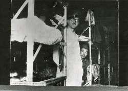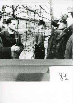 Fallingbostel, marzo 1945, una sentinella da una mano a tagliare la legna
