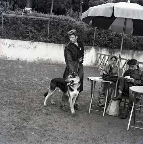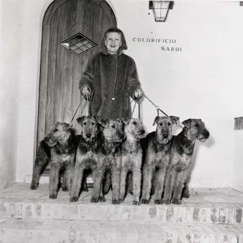 Attrice Vivi Gioi con cani all'esterno del Jolly