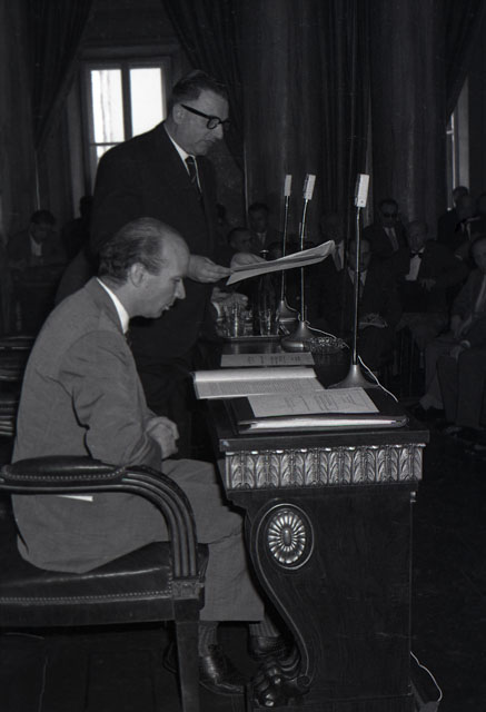 Ministro Carli alla CCIA ; Insegna Mostra Storica RAS