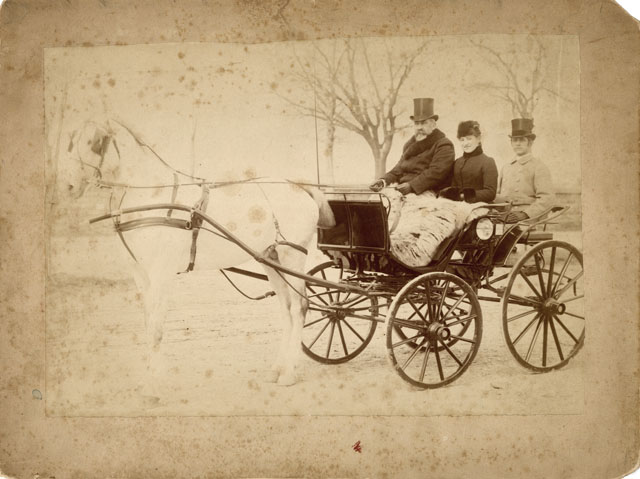 Carrozza aperta con cavallo bianco e posto posteriore per il servitore