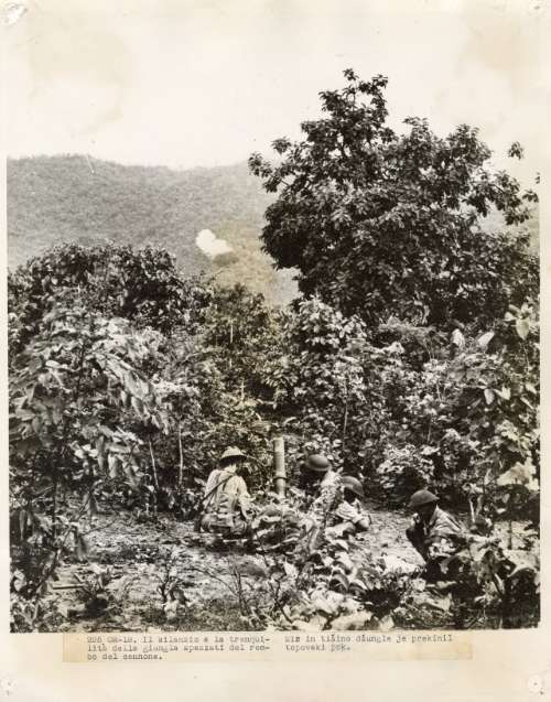 From atop [sic] a hill chinese soldier observe the results of artillery fire by student gun crews