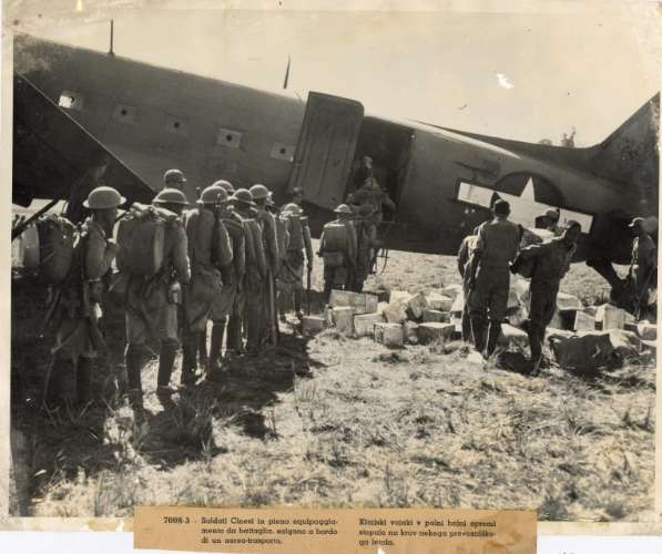 Chinese troops in full battle dress board one of the A.T.C. transport planes