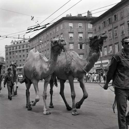 Arrivo a TS carovana Circo Orfei (anche veduta rotaie tram v.le Miramare e Faro)
