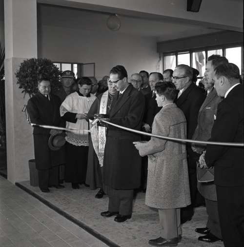 Fossalon : Posa prima pietra della chiesa e comizio del ministro Colombo (DC)