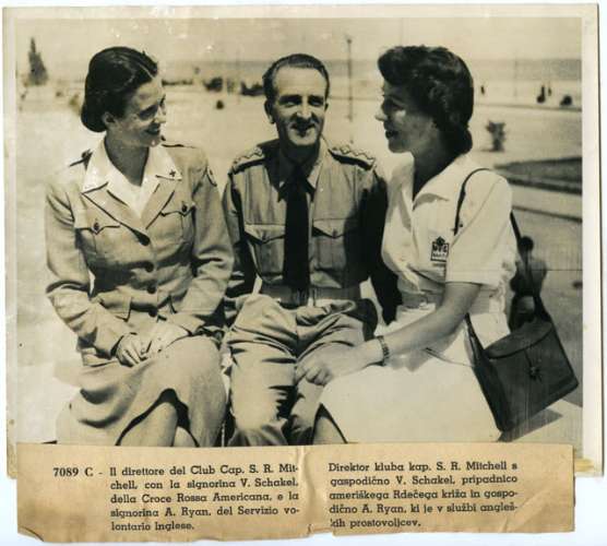 Il direttore del Club Cap. S. R. Mit-chell, con la signorina V. Schakel. della Croce Rossa Americana, e la signorina A. Ryan, del Servizio volontario Inglese.