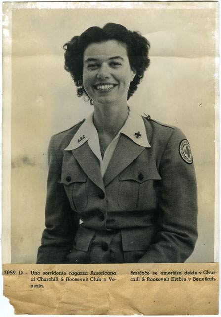 Una sorridente ragazza Americana al Churchill & Roosevelt Club a Venezia