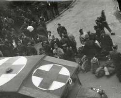 Ospedale militare di Bomlitz (Hannover), 27 agosto 1945, scena della partenza nell'ospedale: le ambulanze inglesi caricano gli ammalati