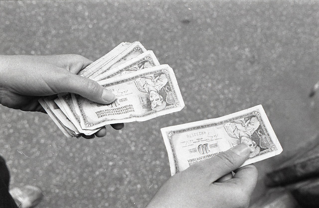 Mani con banconote da 10 dinari