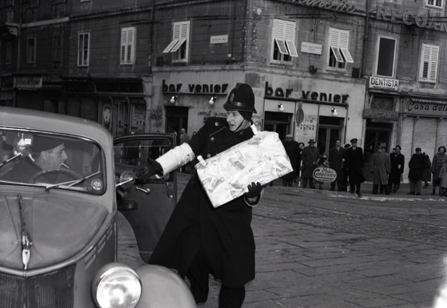 Befana CISNAL. Freddo piazza Unità. Tabacchino, bora, carabiniere, Ulcigrai, cuochi, Campavaglia, Gambassini.